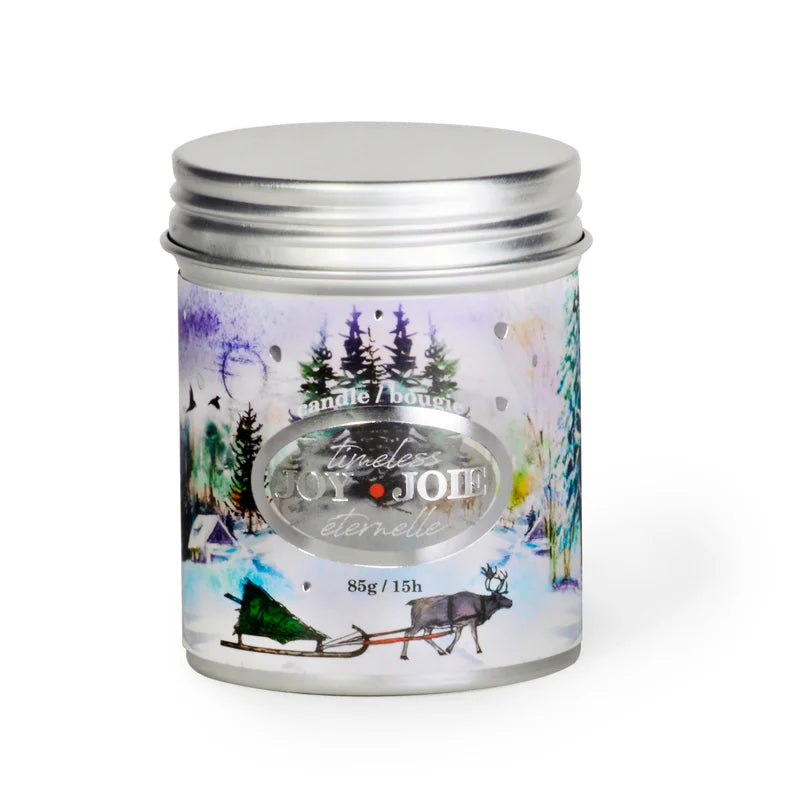 Bring the best winter memories with you everywhere you go - with this Timeless Joy Travel Tin Candle!