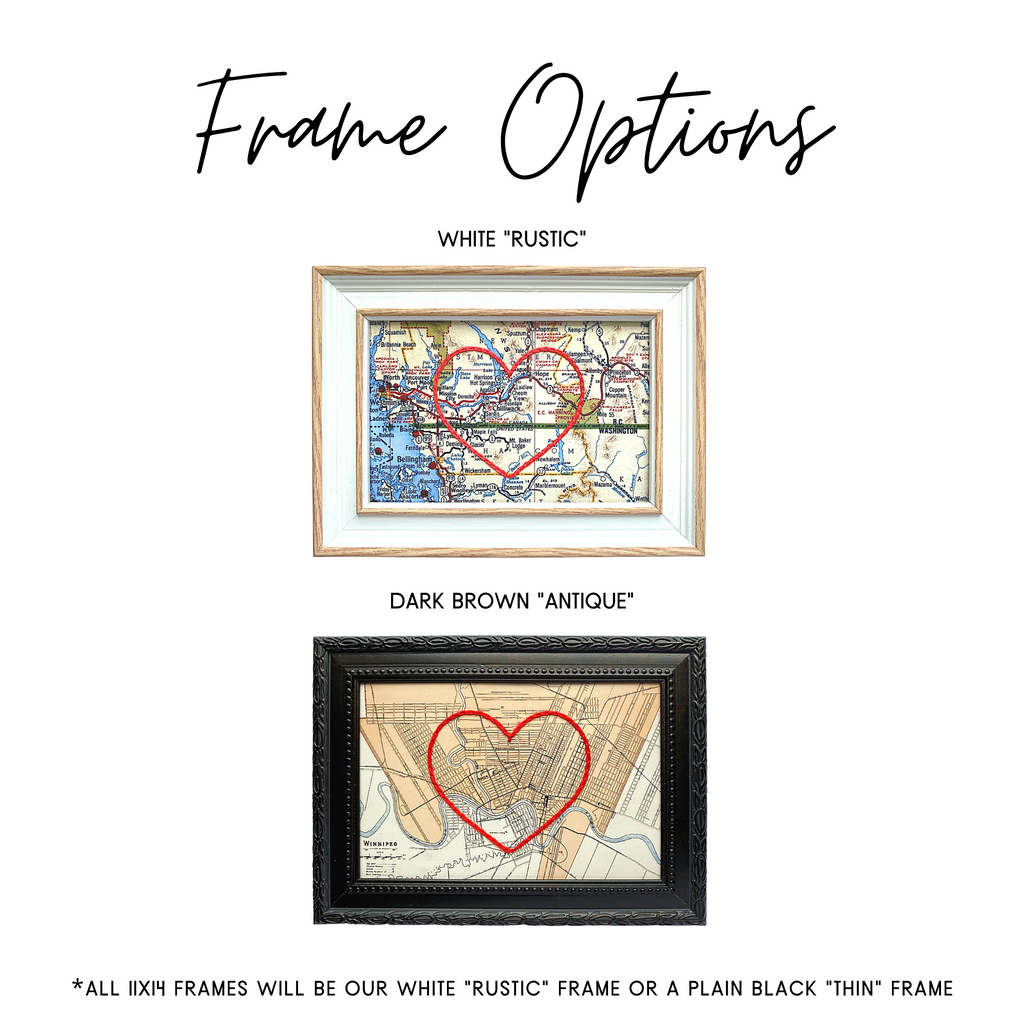 NOTE: All pieces are framed for your convenience in a complimentary vintage-inspired frame unless otherwise specified at checkout. All frames can be hung or displayed on a wall or shelf. Some book pages have small rips or wrinkles as they are torn from old book pages - please check the photos before ordering.