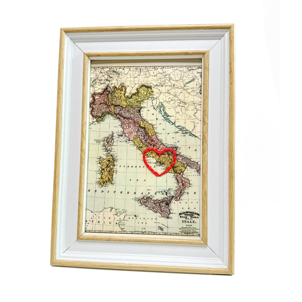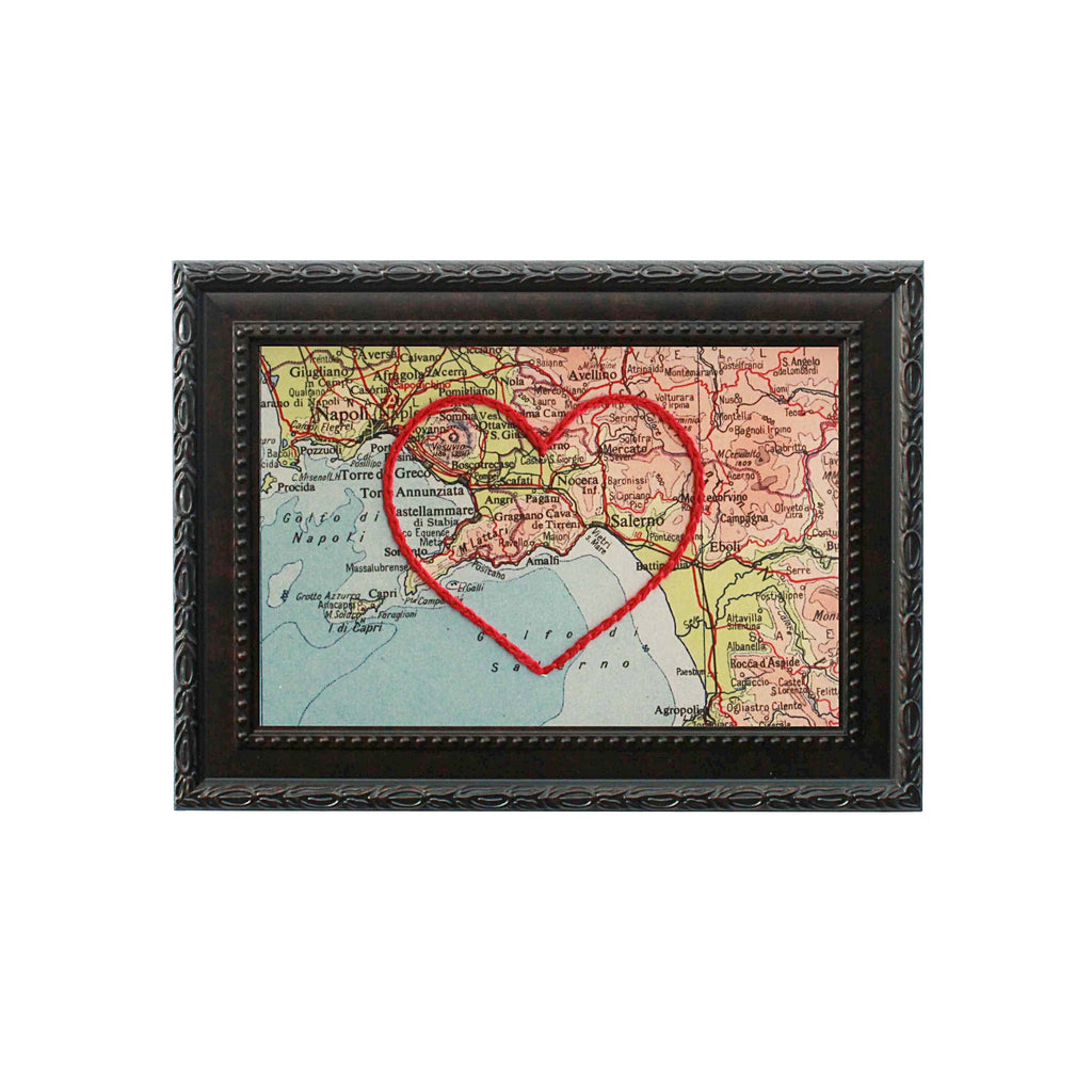 Framed and Ready to Gift: This Amalfi Coast Heart Map is framed for your convenience in a complimentary vintage-inspired frame of your choosing! See product photos for options. All frames can be hung or displayed on a wall or shelf - whichever suits the owner best (except 11x14 frames - which can only be hung).