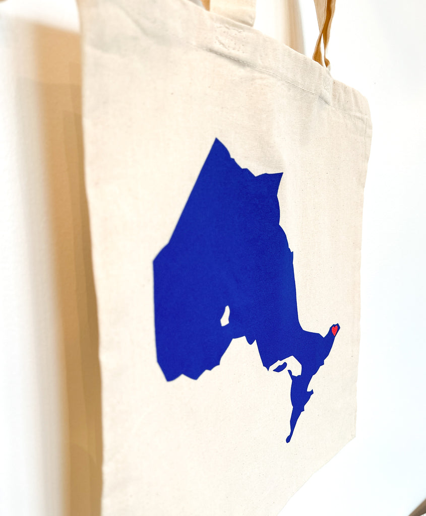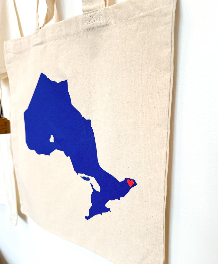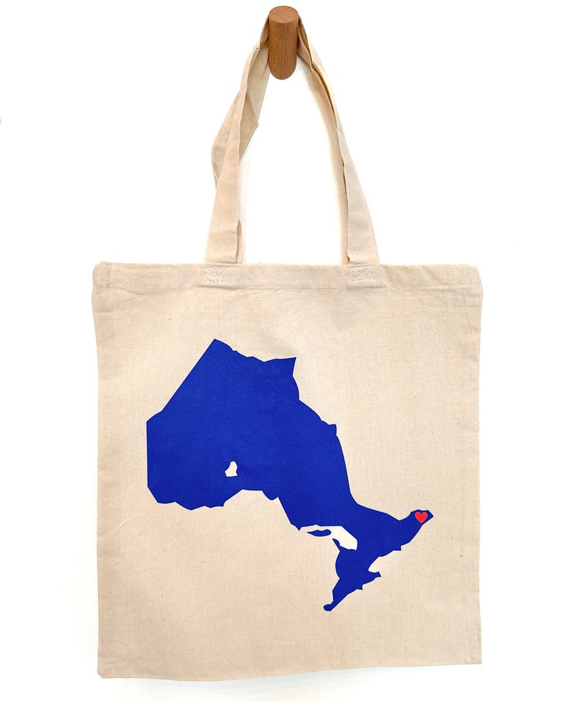 Screen-printed with the shape of Ontario and a heart over the Glengarry region, it's the perfect accessory for carrying your records, schoolwork, or anything you want!