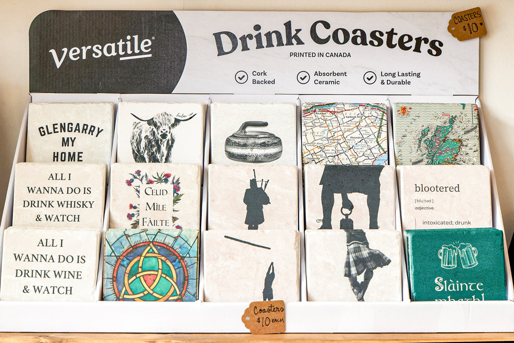 These coaster tiles are made from a proprietary ceramic blend which means they will absorb the condensation right off your glassware - no more water rings on your tables!