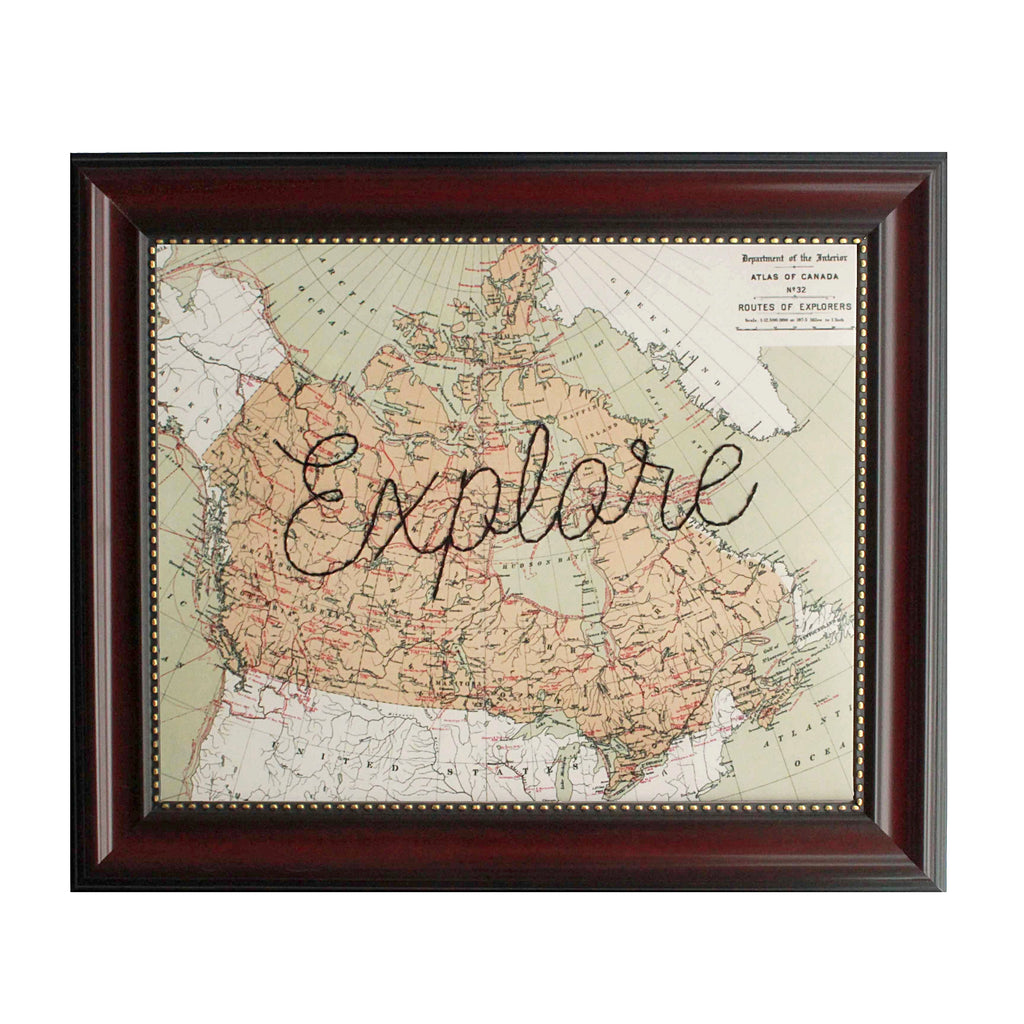 Our hand-embroidered “Explore” Canada Map is the perfect gift or memento for anyone who is always ready to explore the great white north.