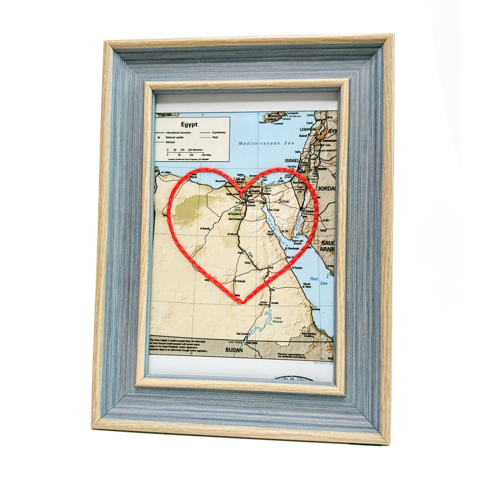 Framed and Ready to Gift: This Egypt Heart Map is framed for your convenience in a complimentary vintage-inspired frame of your choosing! See product photos for options. All frames can be hung or displayed on a wall or shelf - whichever suits the owner best (except 11x14 frames - which can only be hung).