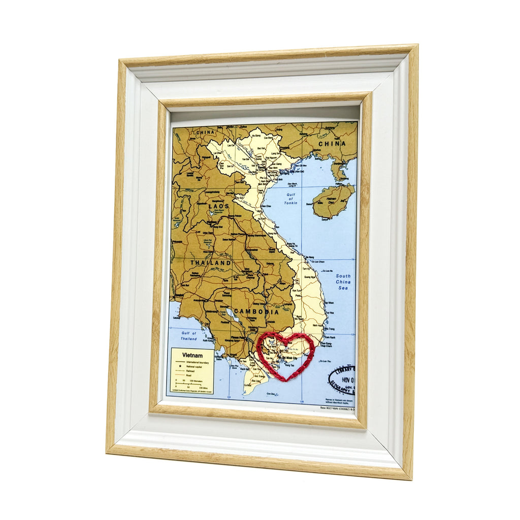 Framed and Ready to Gift: This Ho Chi Minh City Heart Map is framed for your convenience in a complimentary vintage-inspired frame of your choosing! See product photos for options. All frames can be hung or displayed on a wall or shelf - whichever suits the owner best (except 11x14 frames - which can only be hung).