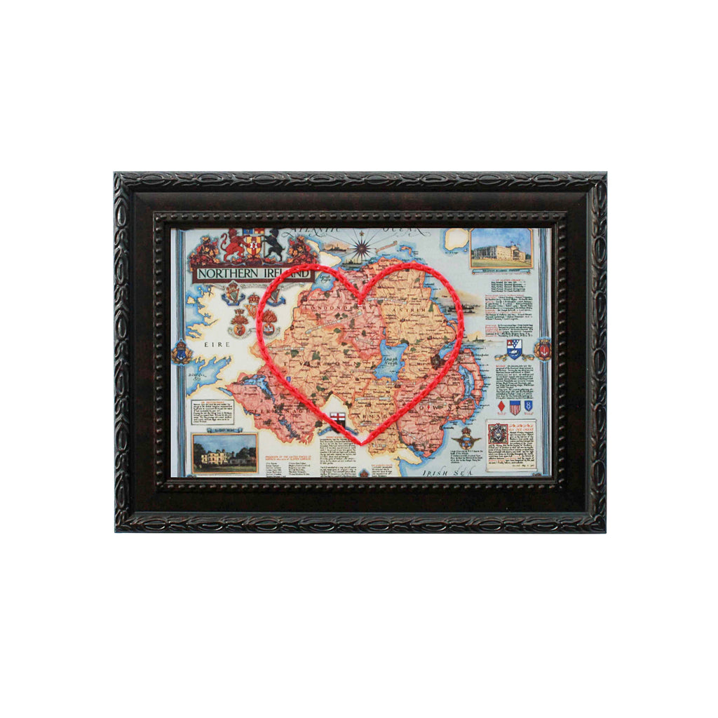 Framed and Ready to Gift: Our Northern Ireland Heart Map is framed for your convenience in a complimentary vintage-inspired frame! See product photos for options. All frames can be hung or displayed on a wall or shelf - whichever suits the owner best (except 11x14 frames - which can only be hung).