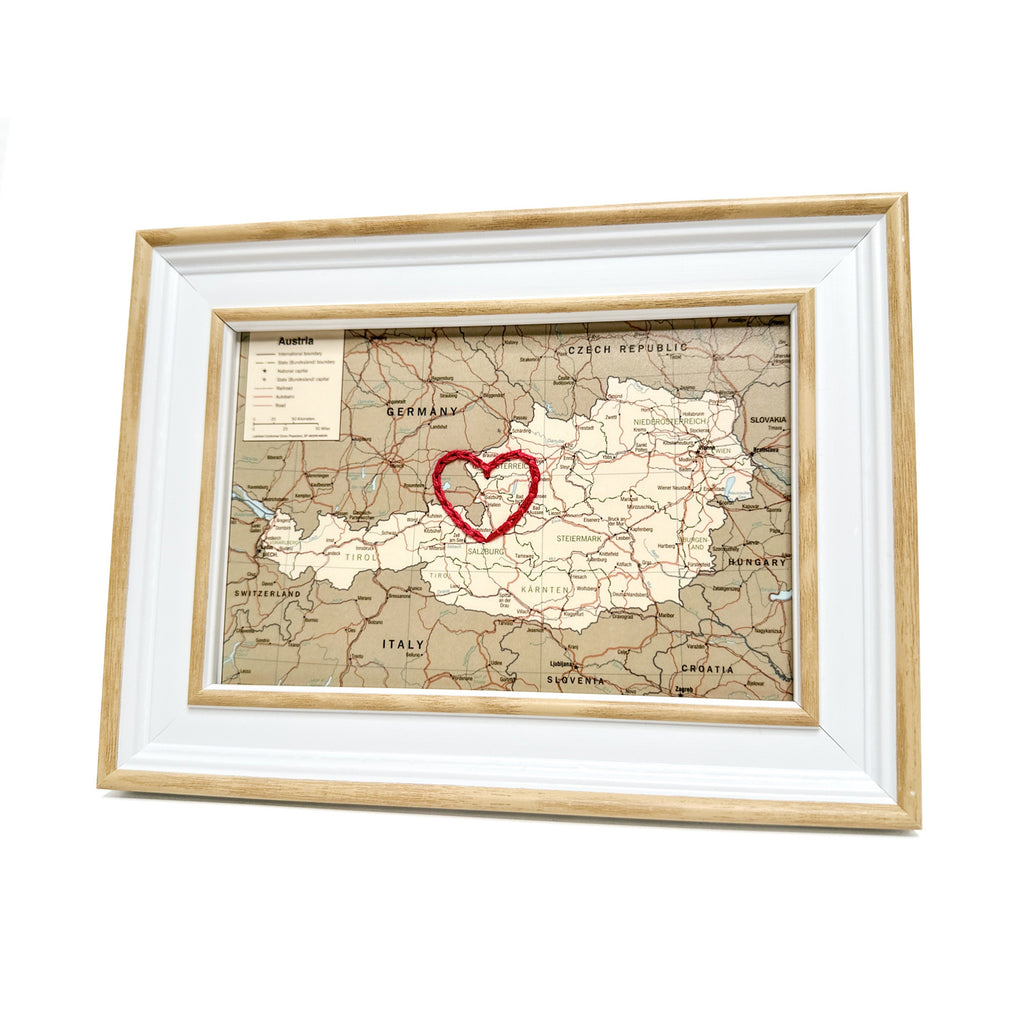 Framed and Ready to Gift: Our Salzburg Heart Map is framed for your convenience in a complimentary vintage-inspired frame! See product photos for options. All frames can be hung or displayed on a wall or shelf - whichever suits the owner best (except 11x14 frames - which can only be hung).